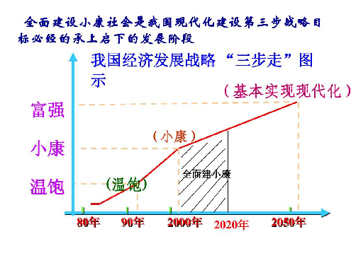 全面建设小康社会的奋斗目标,是立足于我国的基本国情提出的。全面建设小康社会,实现现代化建设第三步战略目标必经的承上启下的发展阶段,也是一个既体现时代精神,又具有中国特色,既实事求是、其实可行,有鼓舞人心、催人奋进的目标。这是充分体现社会主义制度优越性的目标。