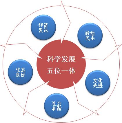 “五位一体”总体:指由经济建设、政治建设、文化建设、社会建设、生态文明建设构成的有机统一体,是指在布局中要照顾到整个系统中的每一个部分。