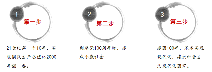 三、党的十七大、十八大对全面建成小康社会提出了新的要求,作出了新的部署:“两个一百年”的奋斗目标。
