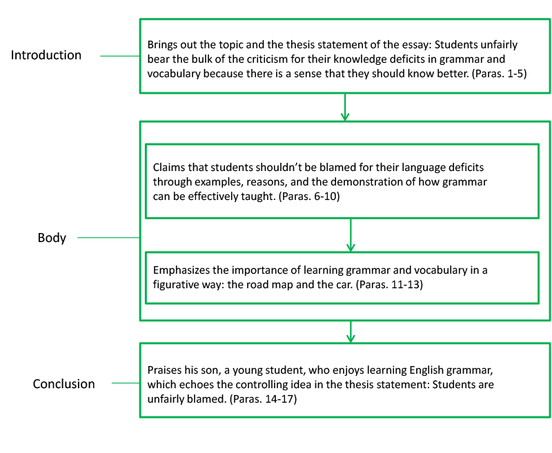 Read to learn the structure of moving from paragraph to essay.