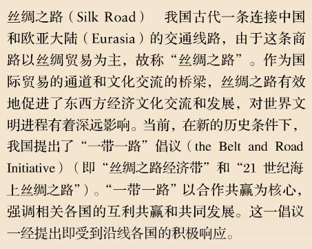 The Silk Road is a traffic route in the ancient times connecting China and Eurasia. This trade route focuses on the trade of silk, hence the name “the Silk Road”. As an international trade channel and a bridge of cultural exchanges, the Silk Road effectively improved the economic and cultural exchanges and development between the East and the West, exerting a profound impact on the progress of the world civilization. Nowadays, under the new historical circumstances, our country proposes the strategy of “One Belt, One Road”(namely the Silk Road Economic Belt and the 21st-century Maritime Silk Road). The strategy of “One Belt, One Road” focuses on cooperation and mutual benefits, emphasizing mutual benefits, win-win, as well as common development of the related countries. Once proposed, the strategy has received positive responses from the related countries along the road.
