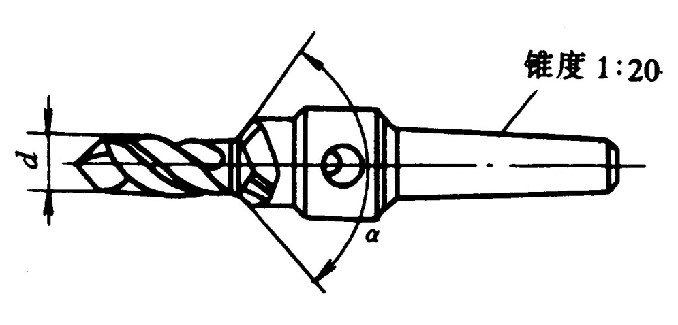 铆钉锪钻又分为铆钉窝锪钻、骨架锪窝用锪钻、反切锪钻三种。铆钉窝锪钻借其带1:20 锥度的尾杆装在锪窝限制器中。在风钻上使用时则夹持尾杆的圆柱段。导柱有两种形式:柱形导柱用于一般部位;球形短导可用于斜面锪窝。
