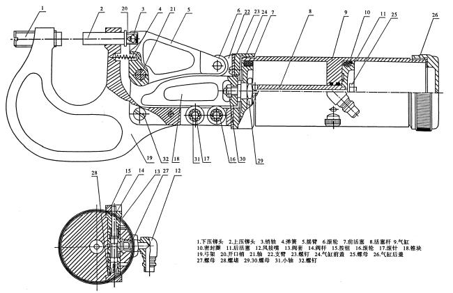 推式气动手提压铆机的结构如图所示。