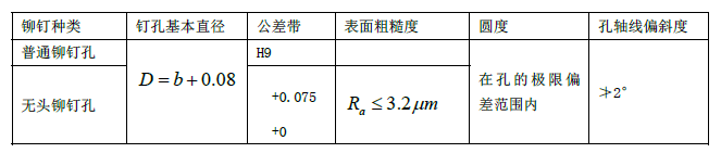 5) 零件表面由窝锪钻套造成的压痕、凹陷和轻微的机械损伤是允许的,但其深度应小于材料包覆层,数量不大于铆钉排内窝数的3%。