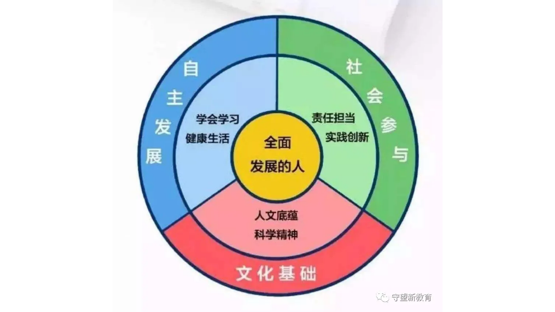 下面说一下管理怎么转变。“管”实际包括三个方面,学校怎么管老师、管学生,这是学校内部抓的;第二怎么管学校,第三怎么管政府。现在学校对老师、对学生管得很严,政府对学校管很很死,但是没有人管政府。过去为考而管,为考而教,为考而学,我认为将来要发生变化,应当学校全面发展,全面发展是结果,主动发展是过程。我们首先看学校怎么管。学校内部的管理关键在于抓住评价环节。评价一个学生是不是好学生不能只看分数,所以现在教育部提出培养核心素养,提升学生素质综合评价。再一个就是教师评价,评价教师也不能只看分数。我认为一个学校好不好的第一条标准是让学生乐学、会学、学好。学好包括两方面,一是学会知识,二是学会做人,两个方面都要做好。老师要乐教、会教、教好,教师的教学技能也需要提高,现在师范大学对老师教学素养的培养甚至不如原来的中等师范学校。分数很重要,但是分数不是重点,老师要让孩子喜欢学,喜欢你这个老师,喜欢你这个学科,让孩子学会学习,特别学会今天讲的21世纪素养,这样不但学会知识,也学会做人,这才是真正的教好。
