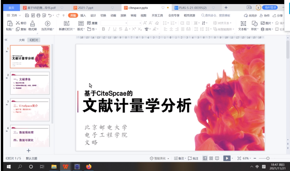 1.课程内容:citespace软件基本操作视频教程学习,熟悉基本的分析功能。