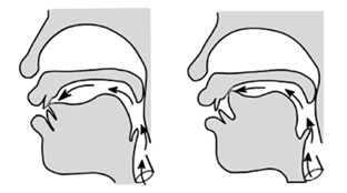 3.气流的强弱:根据除阻后呼出气流的强弱,可以把塞音、塞擦音再分为送气音和不送气音两种。送气音是除阻后有较强的气流喷吐而出的音;不送气音是除阻后呼出气流短促而微弱的音。