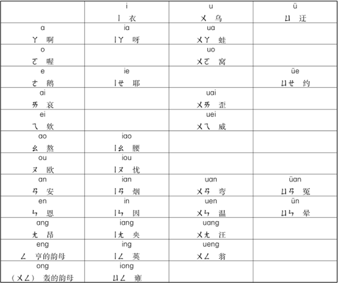 韵母指音节中声母后面的部分。如在“dà”(大)这个音节里,声母d后面的ɑ就是韵母。零声母音节整个由韵母构成,如“é”(鹅)。构成韵母的音素以元音为主,也有辅音,比如,“舞蹈(wǔdǎo)”中的韵母“u、ɑo”,是由单元音或复元音构成的,而“振兴(zhèn xīnɡ)中的韵母“en、inɡ”则是元音加辅音构成的。