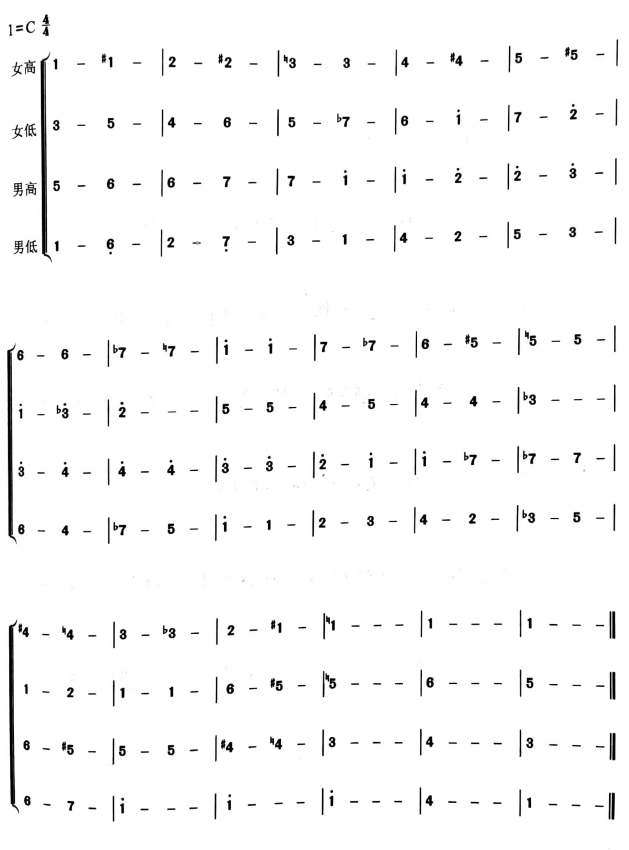三、半音音阶练习(注意和弦得进行与变化,感觉美妙得和声,各声部可以和