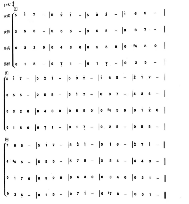 三、声部配合练习曲(女声有连贯乐句感,男声从容自由)