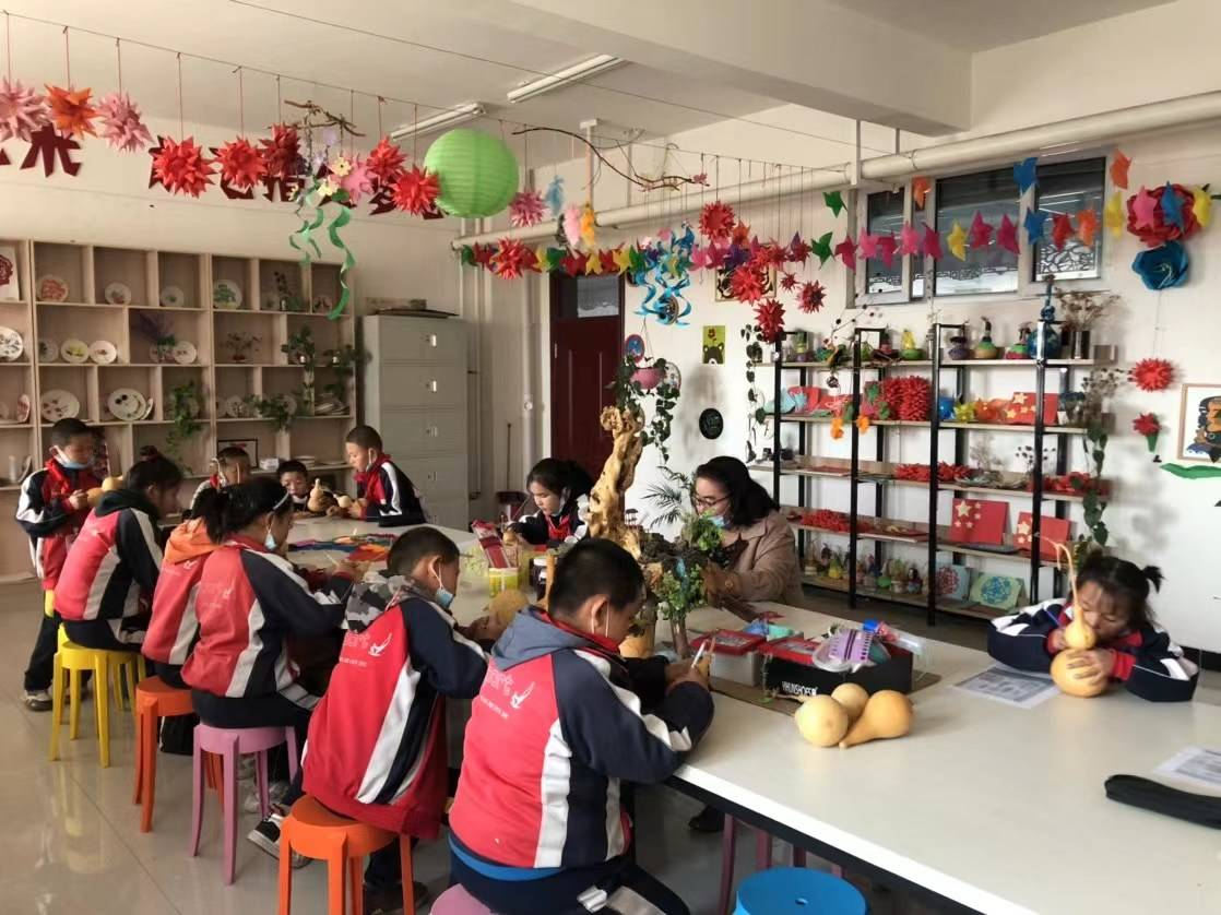 学校结合“生命教育”文化主题,为全面实施“一校一品”“一生一运动项目”“一生一艺术特长”体育艺术素养提升工程,在学校领导和全体师生的带领和参与下,学校依照校园特色和学生特点,在“润泽生命,和谐发展”办学理念指引下,以“育有生命自觉的现代人,打造有灵魂的特色学校”为办学目标,秉承 “让师生的生命成长处处精彩”的办学宗旨,面向全体学生,通过多种途径,采取各种措施,积极开展艺术教育工作,不断更新、提高教师的艺术教育观念和水平,提高学生审美情趣及享受美,欣赏美,创造美的能力。学校开设特色社团19个,将葫芦烙刻、小曲子、剪纸传统文化进入社团课程体系,满足学生多元发展需求。今年学校荣获国家教育部第三批全国中小学中华优秀传统文化传承学校荣誉称号。葫芦烙刻作为学校中华优秀传统文化传承项目之一,2015年正式启动以来,备受学生们的热捧。它的起源是学校利用现有优势,开设综合实践活动基地,种植蔬菜、葫芦。尤其是我校的刘中元老师,将自己浓郁的热爱转化为动力,带着孩子,从一粒种子种下开始,细心管理,不断实践,葫芦获得了丰收。他静下心来思考,怎样赋予葫芦第二次生命,他摸索、探讨,拜师非物质文化遗产老艺人陶老师,虚心请教,在老师的指导和自