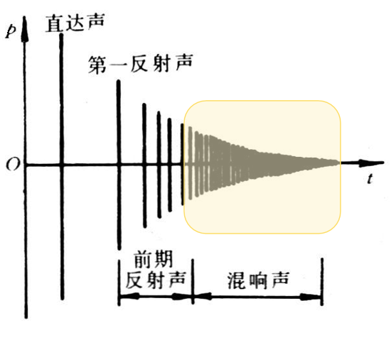 混响,即在室内反射声中除去前期反射声以外剩下的那部分反射声的整体。