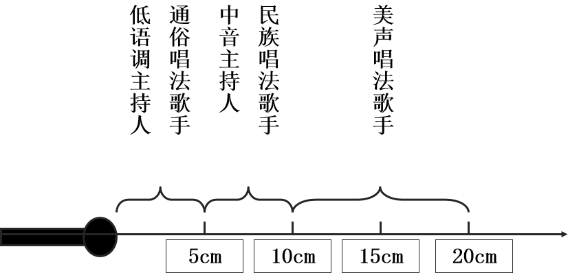 中距离拾音 | 5-10cm | 混响轻微,音质清晰、明亮;给人以轻松、活泼、开朗、爽快的感觉。 | 中音主持人或民族演唱歌手。 主持人:5cm左右 民族唱法: 5-10cm |