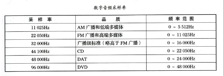 采样频率——22.05kHz、44.1kHz、48kHz、88.2kHz、192kHz。