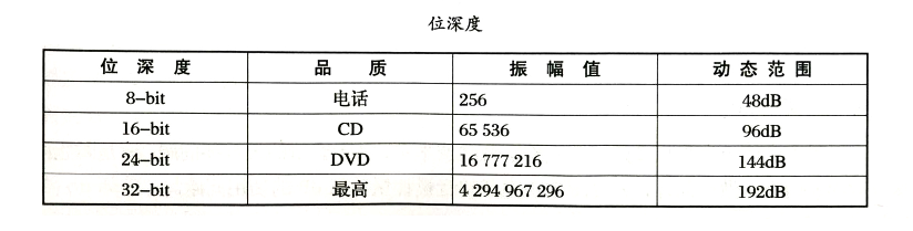 一般来说,数字音频采用16位深最为常见,但有些HiFi系统采用24、32位深,而有些要求较低的场合,如电话,也可能只使用8位深的信号。