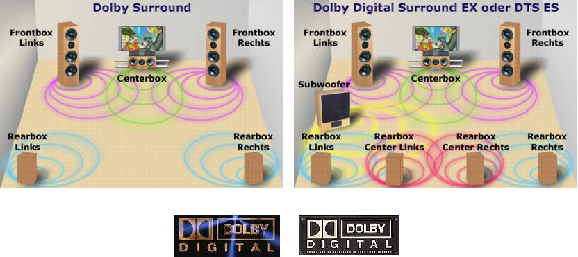 Dolby AC-3提供的环绕声系统由五个全频域声道加一个超低音声道组成,所以被称作5.1个声道。五个声道包括前置的“左声道”、“中置声道”、“右声道”、后置的"左环绕声道"和"右环绕声道"。这些声道的频率范围均为全频域响应3-20000Hz。第六个声道也就是超低音声道包含了一些额外的低音信息,使得一些场景如爆炸、撞击声等的效果更好。由于这个声道的频率响应为3-120Hz,所以称".1"声道。