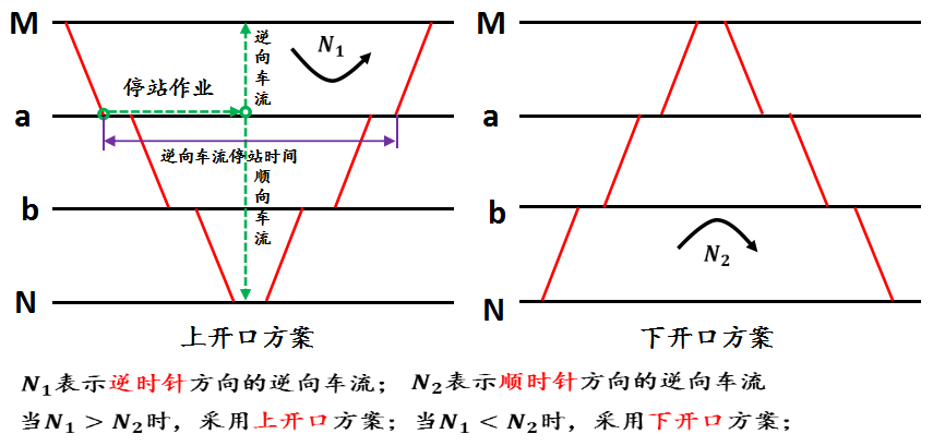 运行线的平移,会对逆向车流在站总停留时间产生不同影响,可以通过对各个平移方案进行计算,求出总停留时间最小的方案——最优方案。
