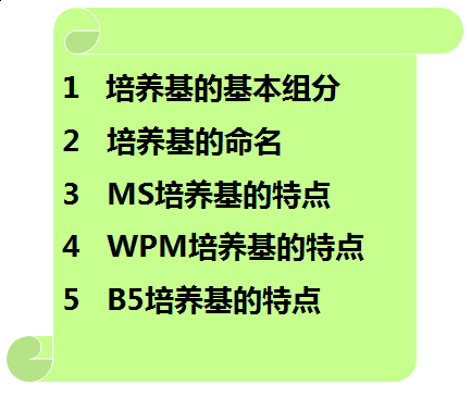 本章介绍了培养基的基本成分及其作用、常用基本培养基的种类特点以及培养基制备技术。