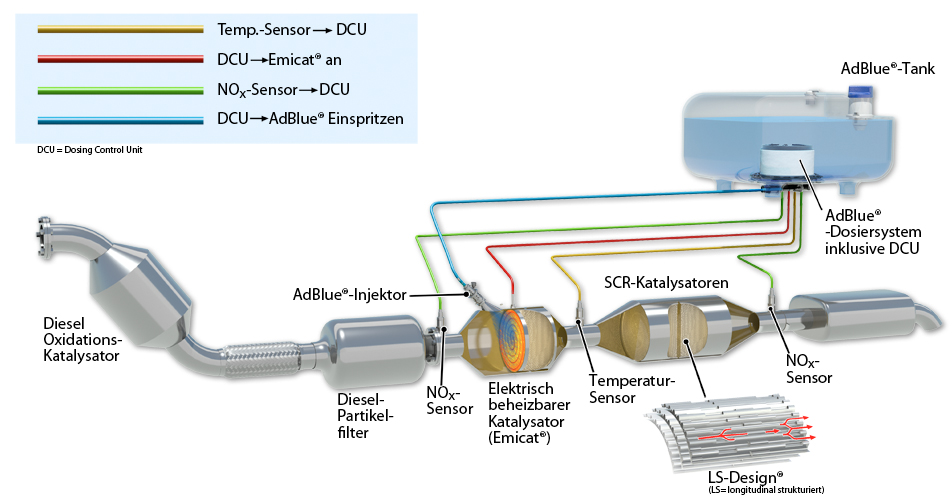 4. DOC, diesel oxidation catalyst, weniger HC/CO, kein Einfluss auf NOx