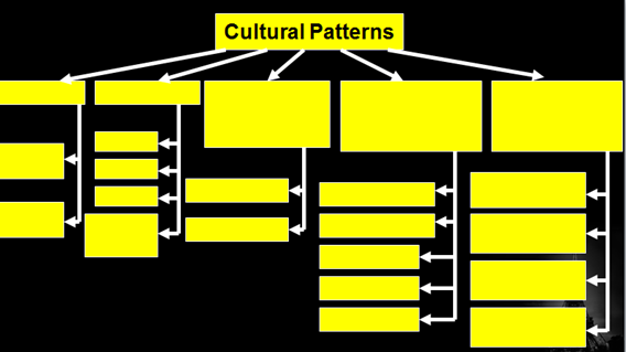 (1) Cultural pattern: Shared beliefs, values, norms, and social practices that are stable over time and that lead to roughly similar behaviors across similar situations are known as cultural patterns. (文化模式是指在相对稳定的共有的信仰、价值观、标准和社会实践,这些文化模式在相似的情形下会使人产生相似的行为。)