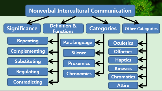 Summarize the categories of nonverbal intercultural communication.