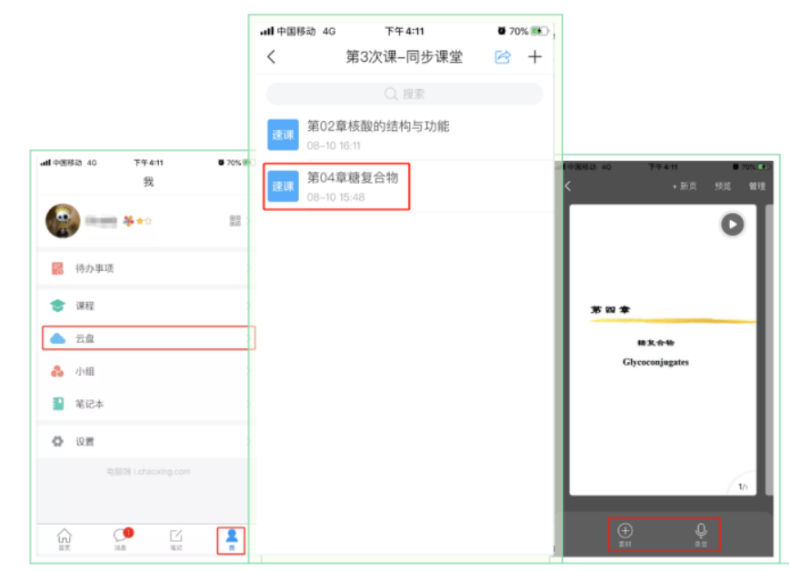 在云盘中找到同步课堂形成的速课,可对该速课进行二次编辑,可以添加PPT、图片、文档等素材,也可以对音频进行重新录制