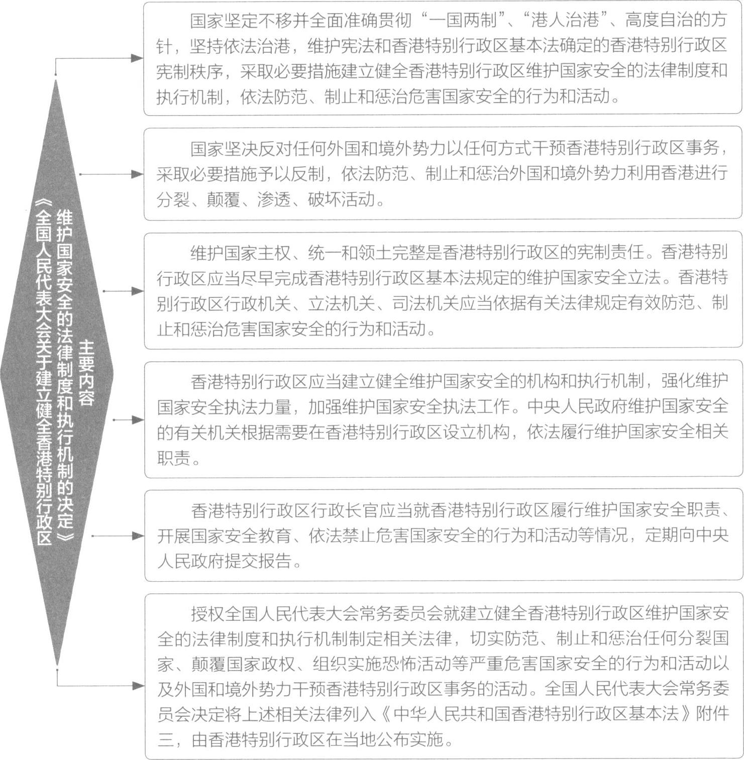 2016年11月,十二届全国人大常委会第二十四次会议通过关于香港特别行政区基本法第一百零四条的解释。2020年5月,十三届全国人大三次会议通过《全国人民代表大会关于建立健全香港特别行政区维护国家安全的法律制度和执行机制的决定》。同年6月,十三届全国人大常委会第二十次会议通过《中华人民共和国香港特别行政区维护国家安全法》,并将其列入香港基本法附件三。香港国安法的颁布实施,为香港特别行政区行政、立法、司法机关依法防范、制止和惩治危害国家安全的行为和活动提供了有力制度保障,是“一国两制”事业的重要里程碑。