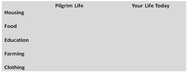 2. Complete the following chart, and compare the life of the Pilgrims in the 1600’s with your life today.