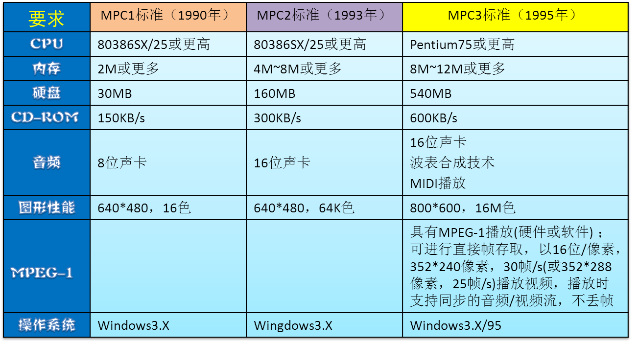 一般而言,如果一台计算机配备了多媒体的硬件系统和相应的软件系统,使其具有综合处理图、文、声、像等信息的功能。这种计算机称为多媒体计算机。(Multimedia Personal Computers)MPC。