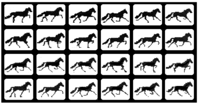 “动画”简单的理解是“活动的画面”。在一沓纸的每张纸上都画上一匹马,根据马匹跑动的规律,每张马的腿部、头部和鬃毛的位置或形态稍稍有所变化,快速翻动这沓纸,呈现在人们面前的就是一匹扬蹄飞奔的骏马。可见,动画是利用人类眼睛的“视觉暂留”现象,让一幅幅静止的画面连续播放,形成的动态效果。