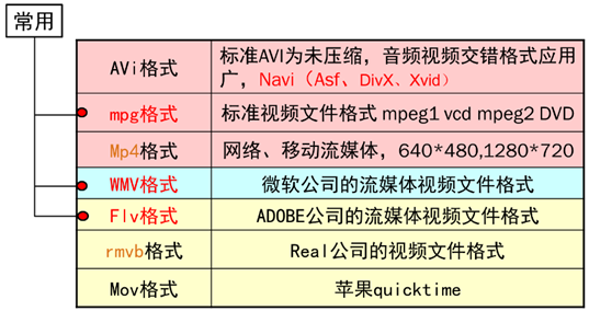 目前我们能看到视频的地方,主要有PC机、网络、手机、苹果系列等电子设备,随着设备和应用范围的不同,以及视频编码的不同,出现了大量的视频格式。
