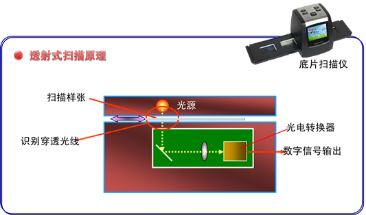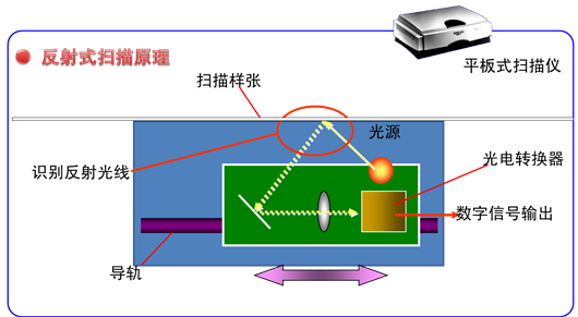 扫描仪(Scanner)是20世纪80年代出现的一种光机电一体化的高科技产品,它可以通过扫描将图片、文稿等转换成计算机能够识别和处理的图像文件。按原理分:反射式、透射式、多用机