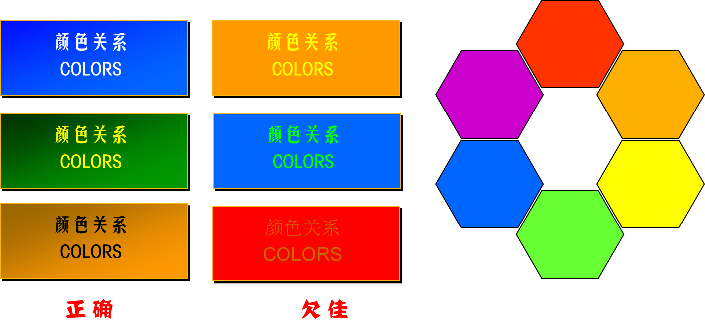 颜色搭配是色彩构成的重要内容,人们需要根据作品所要表达的思想,选择合适的颜色进行搭配,以使其产生美感。颜色搭配要根据不同的需要、不同场合、不同的表达内容,选择不同类型的颜色,获得满意的整体视觉效果,做到该醒目的地方醒目,该柔和的地方柔和。在颜色搭配的过程中应牢记以下两点:一是用三色法来提高醒目程度,二是前景与背景不能使用相邻色。