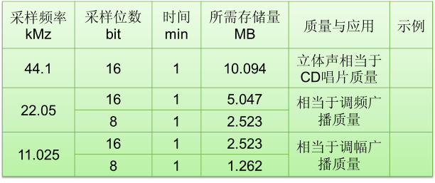 采用频率、量化位数、通道数均直接影响声音的质量和存储量。采样频率直接决定声音的质量和存储量,采样频率每降低1倍,声音的存储量降低一倍。量化位数每降低1倍,声音的存储量降低一倍。声音的通道数每少1个,声音的存储量降低一倍。随着采样频率、量化位数、通道数的降低,声音的质量也随着变差。在音频处理过程中,标准的采样频率为44KHZ、量化位数为16位(32位系统)或32位(64位系统),通道数为双声道立体声。