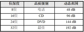 量化位数是用于描述采样点声音波形数据的二进制位数。量化位数越高,音质越好。常见的量化位数有8位、16位、24位、32位。计算机系统是位数深度决定的动态范围,当计算机系统是32位时,16位的量化位数是应用最为广泛的,当计算机系统是64位时,32位的量化位数是应用最为广泛的。