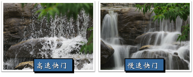 快门指相机感光时间的长短,即相机快门开启的有效时间长度,例如1/30s、1/8s、1/90s等。曝光时间越短,进光量就越少,相对的感光量就越少;反之,曝光时间越长,进光量越多,感光量也就越多。高速快门多用于移动的主体,它可以凝固物体运动的瞬间画面。慢速快门多用于夜景或拖尾现象等特殊效果。如同样的瀑布场景,使用高速快门能够拍摄出水花四溢的溅射效果。而使用慢速快门则会拍摄出水流攒动的效果。