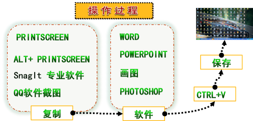 所谓屏幕截图就是将电脑屏幕上的桌面、窗口、对话框、选项卡等屏幕元素保存为图片。使用键盘上的“打印屏幕系统请求”按键进行整个屏幕的截图和当前活动窗口的截图,还可以借助专业的屏幕截图软件进行截图。