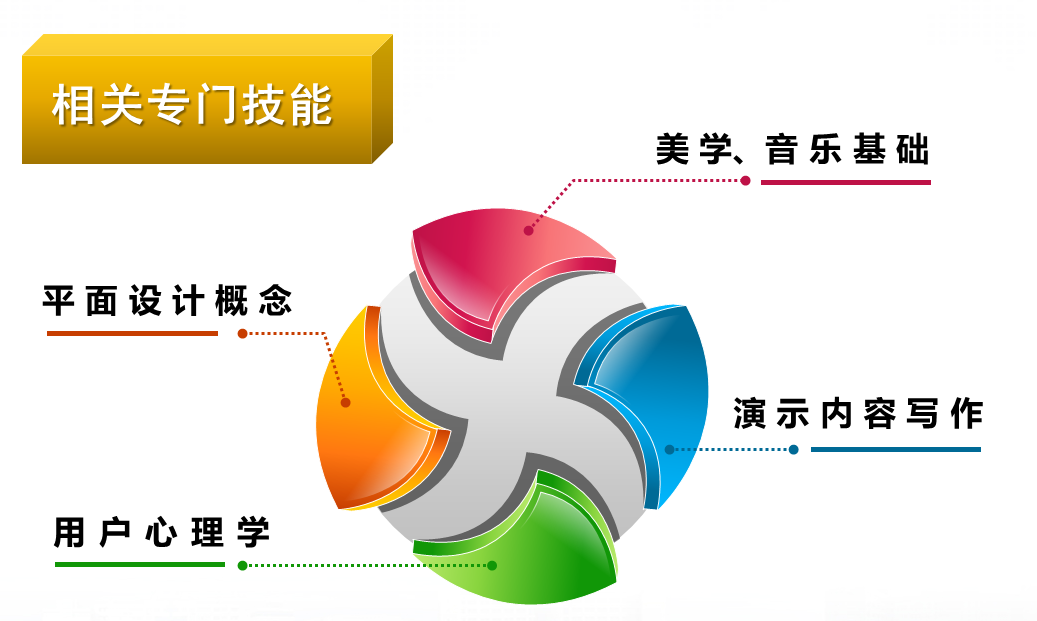 多媒体作品创作涉及平面设计、美学与音乐的基础、用户心理学、内容写作等多个方面。多媒体作品的封面应具备一定艺术性,制作者需掌握一定的平面设计知识。多媒体作品应能给观众一种赏心悦目的感受,制作者需具有一定的美学知识和音乐基础。多媒体作品应符合用户的使用习惯,制作者需了解一定的用户心理学。
