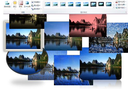 在默认情况下幻灯片中插入的图片是标准的矩形图片,图片的色彩、形状、透明度无法改变。
