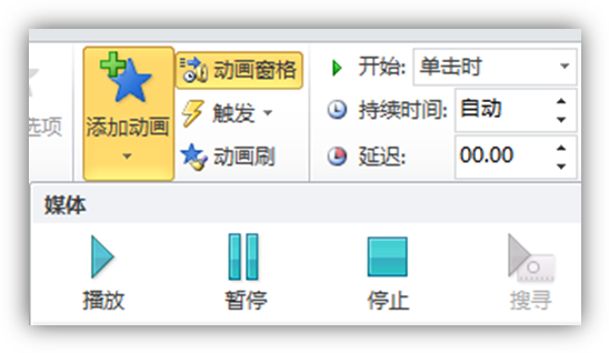 ——支持视音频的按钮控制播放,通过动画设置,使用触发器,实现视频的播放、暂停与停止的播放控制。