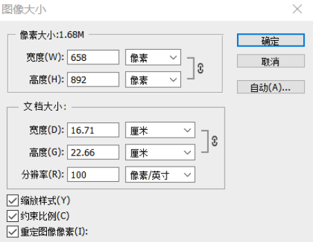 (2)在“图像大小”对话框中的“像素大小”栏输入宽度或高度值,完成图像大小的修改。