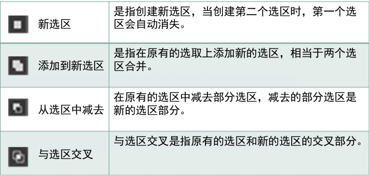 规则选框工具组中有4种选框工具,分别是矩形选框工具、椭圆选框工具、单行选框工具、单列选框工具。