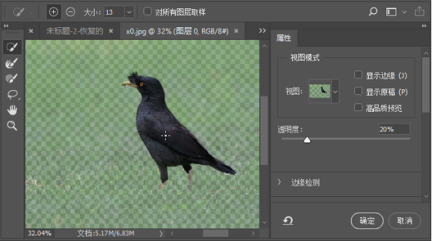 (2)在弹出的面板中单击“快速选择工具”,在图像中选择需要保留的图像,然后单击“确定”按钮。