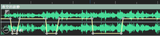 音量包络线用于音频故事中背景音乐音量的精确调整,包络是非破坏性的,它们不会以任何方式更改音频文件。选中背景音乐音频块,在包络线上定位指针,当显示加号时,单击添加关键帧。选择关键帧,向上拖动,增加音量,向下拖动,降低音量,当值为-∞dB时,关键帧的音量为静音效果。右击包络线,然后单击“删除选定的关键帧”,或者将个别关键帧拖离剪辑或轨道,删除关键帧。