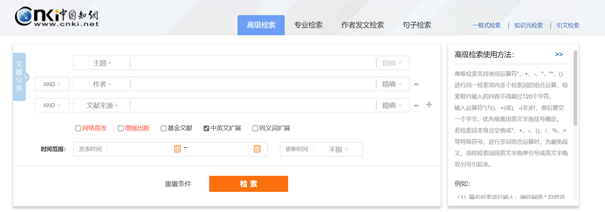 6、进入高级检索界面后,输入检索条件,就能查到符合条件的文献了。