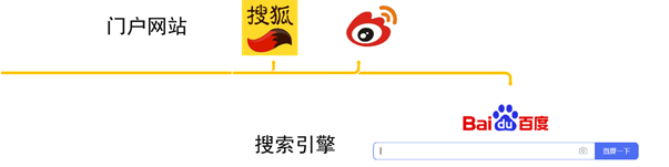 在PC互联网时代,人们获取信息主要通过搜狐、网易、新浪等门户网站获得,门户网站把常用的内容需求都整合到他的网站里面,大家想要获得信息主要在门户网站里面找内容就可以了。有了门户网站之后,还是觉得内容不够丰富。人们想要找一些门户网站里面没有的东西时,搜索引擎应运而生。