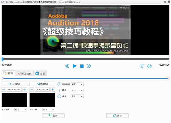 3、在选项中,对视频进行截取。设置视频开始点和结束点,如需要截取,默认即可。