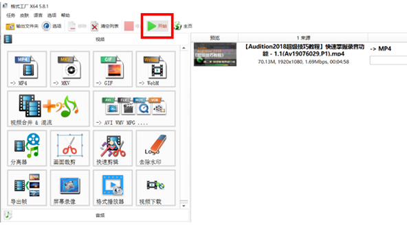 4、选择开始对视频,进行转换。