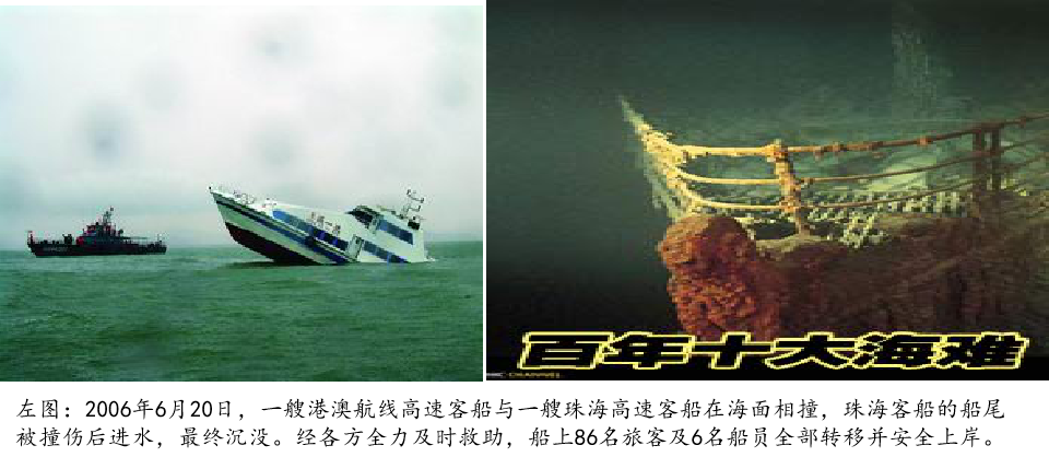 例如,1912.4.10.“泰坦尼克号”(Titinic)海难事件,就是由于船底撞在流动的冰山(Iceberg),造成船毁人亡的悲剧。如图: