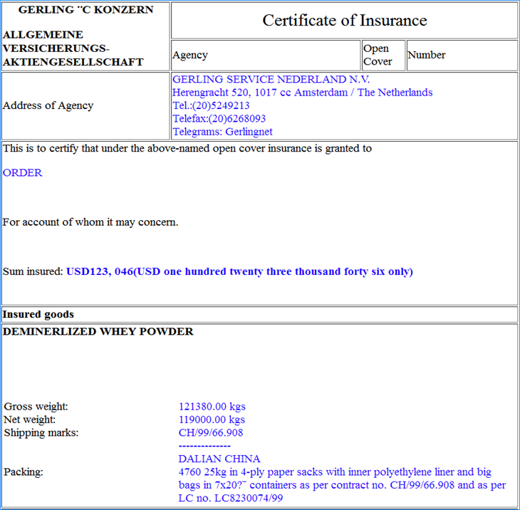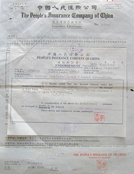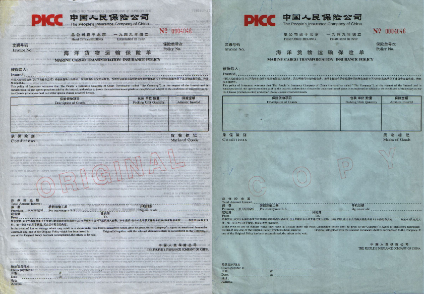 3. 保险凭证(insurance certificate)